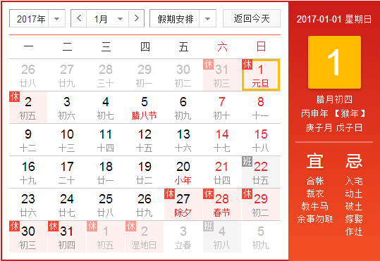 吉倉納米2017元旦放假安排