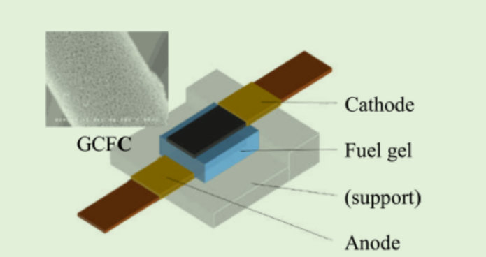 Figure 2. 燃料凝膠的結構被GCFC電極夾住。上圖顯示了GCFC電極表面。