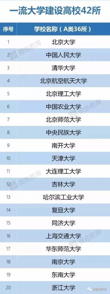 “雙一流”則是兩個平行的評價體系。“一流大學(xué)建設(shè)高校”重在一流學(xué)科基礎(chǔ)上的學(xué)校整體建設(shè)、重點(diǎn)建設(shè),全面提升人才培養(yǎng)水平和創(chuàng)新能力,共計42所,在原來39所985大學(xué)基礎(chǔ)上新增3所。