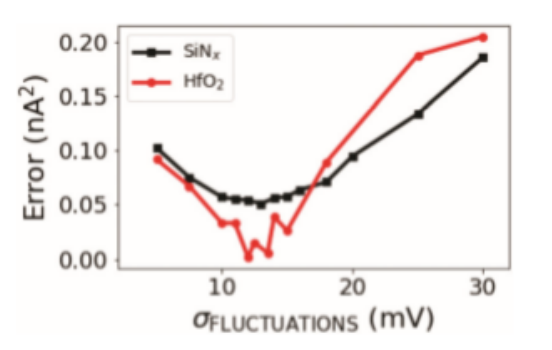 2和SiNx上,模擬和測量的rms噪聲(標(biāo)為誤差)之間的殘差平方總和作為模擬電位波動(dòng)標(biāo)準(zhǔn)偏差的函數(shù)進(jìn)行比較。