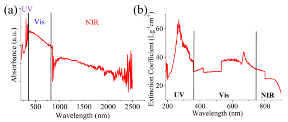 Figure 4. 吸光度和消光系數(shù)。a)GA-CuFeSe