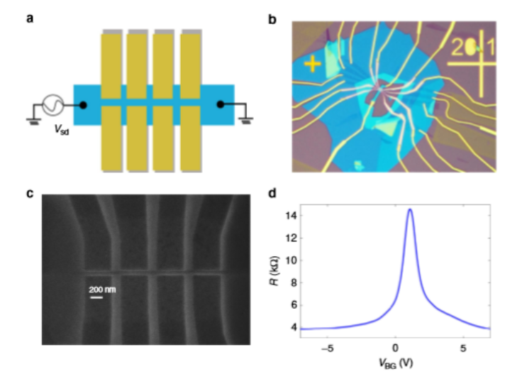 在雙層石墨烯中,若兩個相對門控區(qū)域上的Berry曲率符號發(fā)生反轉(zhuǎn),可以引起具有相反谷折射率反向傳播的一維通道??紤]自旋和亞晶格簡并性,每個方向上有四個量子化的傳導(dǎo)通道。以往的實(shí)驗(yàn)工作中,門控式谷偏振器只能在外加磁場的情況下才能獲得良好的對比度。然而,隨著磁場的增加,雙層石墨烯的非結(jié)合區(qū)域會過渡到量子霍爾狀態(tài),從而限制谷極化電子的應(yīng)用。在這里,我們提出了通過優(yōu)化器件幾何形狀和堆疊方法來改善柵極控谷偏振器的性能。電測量表明,在山谷極化狀態(tài)和間隙狀態(tài)之間的電導(dǎo)差異高達(dá)兩個數(shù)量級。谷極化狀態(tài)顯示的電導(dǎo)接近4e