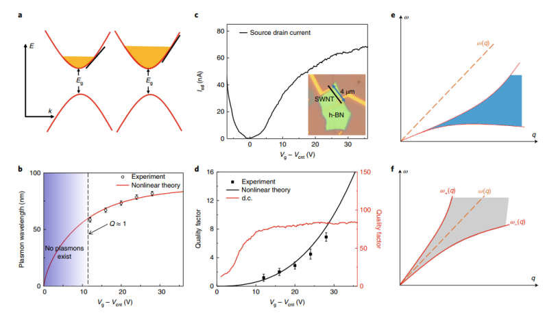 該研究工作由加州大學(xué)伯克利分校王楓課題組(第一作者是王勝)于2020年發(fā)表在Nature Materials國際頂級期刊上。原文:Nonlinear Luttinger liquid plasmons in semiconducting single-walled carbon nanotubes