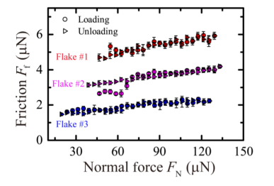 Fig. 3. 石墨/云母異質(zhì)結(jié)經(jīng)RH ~60%處理后的摩擦力實驗測量。