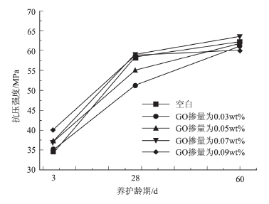 2)將GO 與聚羧酸復合制備出的復合材料,對強度的提高在20%以上,且GO 的摻入量為水泥的0. 05wt%就可以得到很好的強度結果。