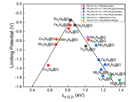 相關(guān)研究成果于2020年由貴州師范學(xué)院Mingsen Deng課題組,發(fā)表在J. Phys. Chem. Lett.(doi.org/10.1021/acs.jpclett.0c01450)上。原文:Atom-Pair Catalysts Supported by N?Doped Graphene for the Nitrogen Reduction Reaction: d?Band Center-Based Descriptor。
