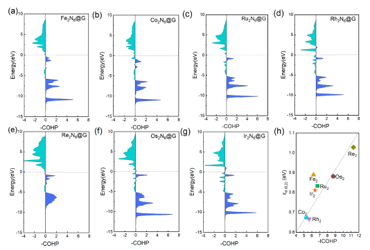 2之間的pCOHP。(h)示出了ICOHP與d波段中心ε
