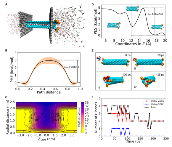 Fig. 3. CNTPs中水運(yùn)的模擬。