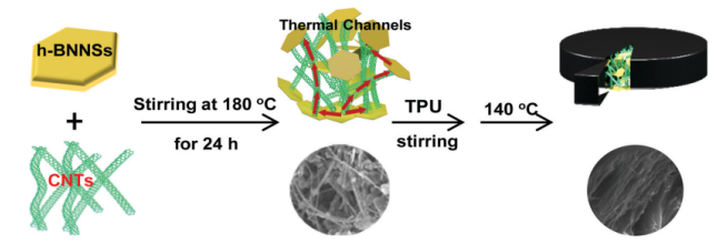 Figure 1. h-BNNSs/CNTs/TPU復(fù)合膜的合成過程示意圖。