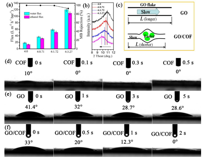 Figure 3. GO/COF膜的滲透通量增加