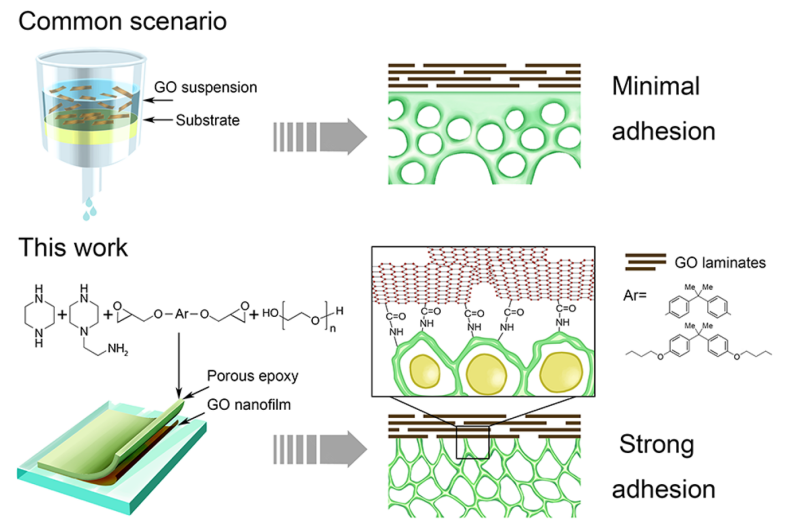 Figure 1. 納米結(jié)構(gòu)氧化石墨烯(T-FLO-GO)復(fù)合膜的示意圖
