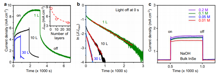 Fig. 3 InSe/Gr光電陽極中的持久光電流密度。