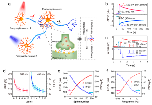 Figure 2. Pyr-GDY/Gr/PbS-QD異質(zhì)結(jié)的突觸特性。