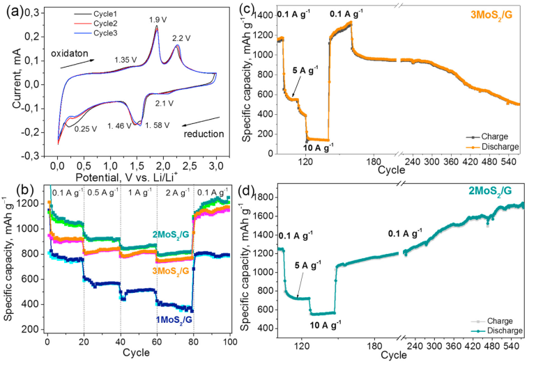 -1(a)。合成材料的倍率性能(b)。3MoS