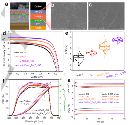 x納米顆粒修飾的氧化石墨烯(GO)已成功地證明是不含貴金屬電極的全無(wú)機(jī)CsPbIBr