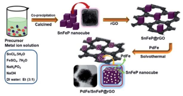Figure 1. PdFe/SnFeP@rGO催化劑的制備示意圖。
