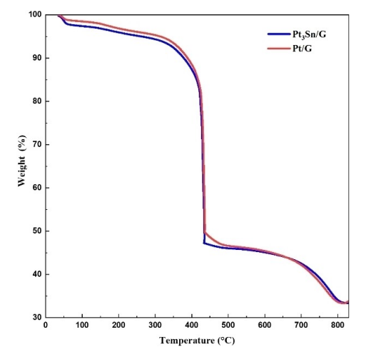 3Sn/G和Pt/G電催化劑的TGA曲線