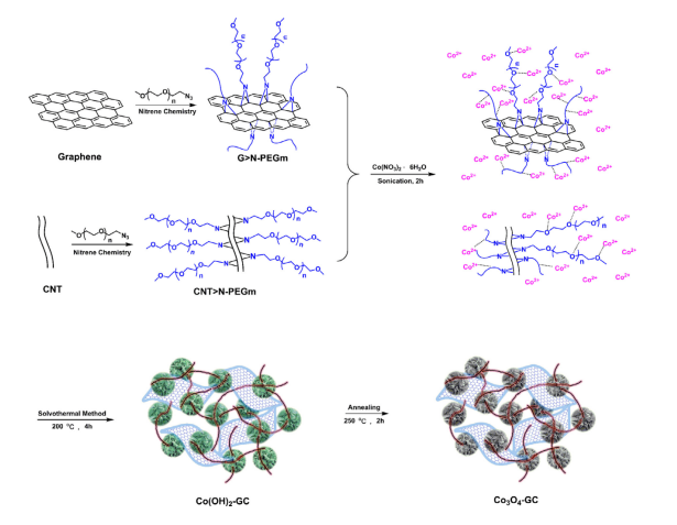 Figure 1. Co3O4-GC三元復(fù)合材料的制備過程示意圖。