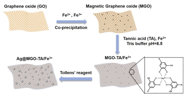 相關(guān)研究成果于2021年由加拿大阿爾伯塔大學(xué)Hongbo Zeng課題組,發(fā)表在Chemical Engineering Journal(https://doi.org/10.1016/j.cej.2020.126629)上。原文:Tannic acid/Fe3+ functionalized magnetic graphene oxide nanocomposite with high loading of silver nanoparticles as ultra-efficient catalyst and disinfectant for wastewater treatment。