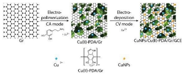 相關研究成果于2021年由越南河內(nèi)國家大學Do Phuc Quan課題組,發(fā)表在Journal of Electroanalytical Chemistry(https://doi.org/10.1016/j.jelechem.2021.115322)上。原文:The role of copper nanoparticles decorating polydopamine/graphene film as catalyst in the enhancement of uric acid sensing。