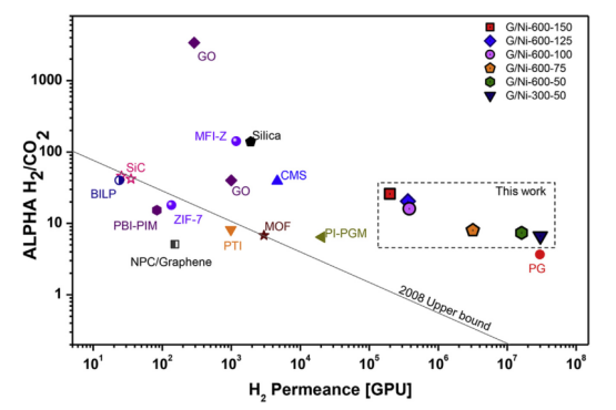 2分離的Robeson上界圖。G/Ni-膜分離H