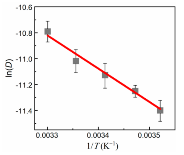 ad的SLG的表觀表面擴(kuò)散系數(shù)D隨溫度變化的阿倫尼烏斯圖。通過在0.5 M H