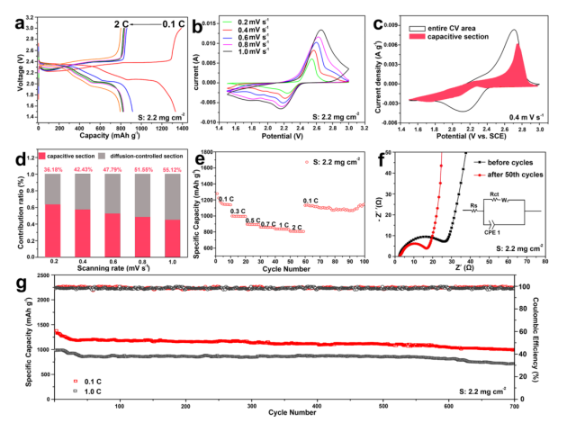 -1的出色容量,硫負(fù)載為2.2毫克 cm
