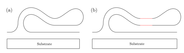 圖2. 折皺的兩種潛在構象的結構圖示:(a)構象A和(b)構象B,與折疊的雙分子層的距離分別為零和非零。