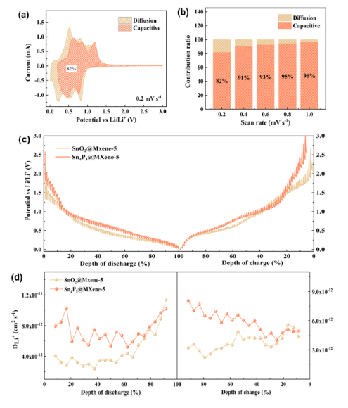 3@MXene-5電極的GITT曲線(xiàn),(d) SnO