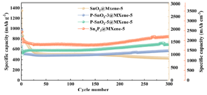 3@MXene混合電路在循環(huán)300次后表現(xiàn)出820 mAh g