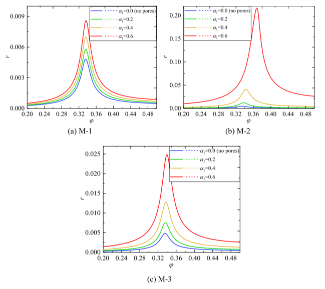 圖6. 不同孔隙率系數(shù)時(shí)主共振頻響曲線。