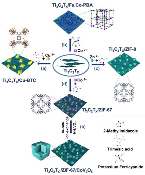 在本研究中,我們提出了一種通用的方法來合成均勻的三維(3D)金屬碳化物,氮化物和碳氮化物(MXenes)/金屬有機(jī)框架(MOFs)復(fù)合材料(Ti