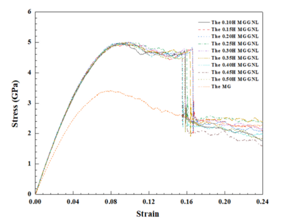 圖2. MGGNLs 和 MG的應(yīng)力-應(yīng)變曲線。