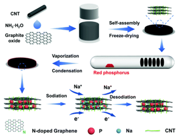 相關(guān)研究工作由合肥工業(yè)大學(xué)Hongfa Xiang課題組于2022年發(fā)表在 《Chem. Commun.》期刊上。原文:A high areal capacity sodium-ion battery anode enabled by a free-standing red phosphorus@N-doped graphene/CNTs aerogel。