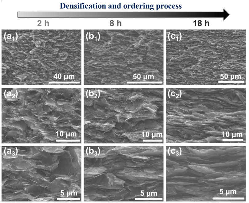 3) 和18 h ((c1)–(c3))制備的 G/WPU 薄膜的橫截面 SEM 圖。