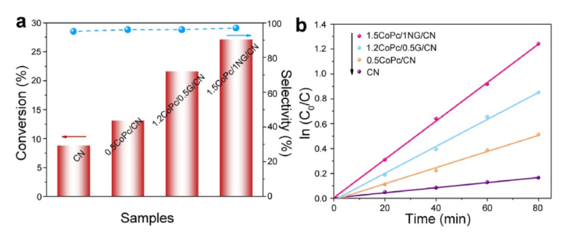 4納米片(CoPc/NG/CN)異質(zhì)結(jié)。相比于僅含CN時,優(yōu)化的CoPc/NG/CN光催化劑在O