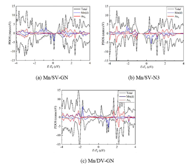 圖13. 三種不同Mn/GS吸附體系的PDOS吸附曲線(xiàn)。