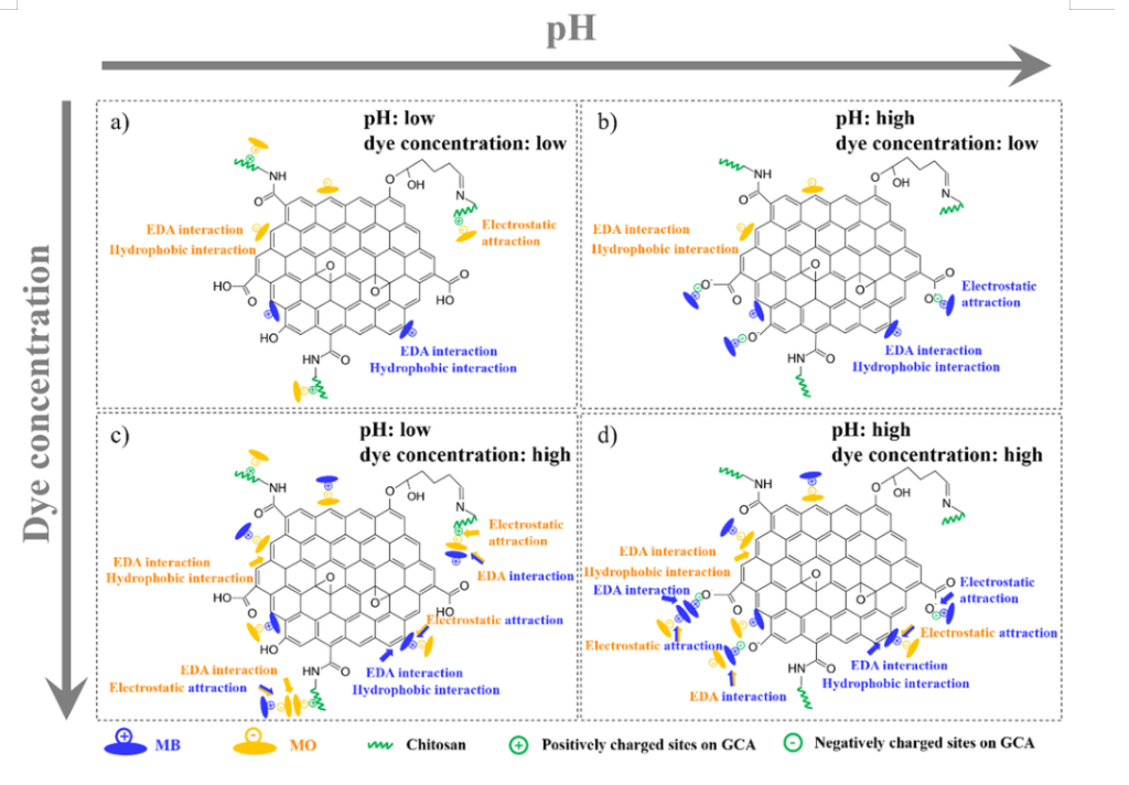 圖7. 二元MB/MO體系中吸附的合理吸附機理。