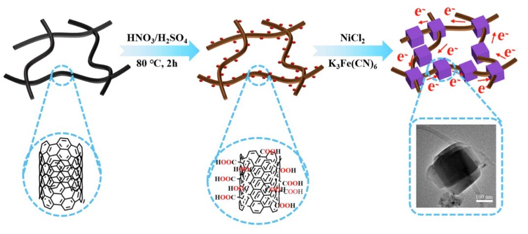 Figure 1. NiHCF/CNT 復合材料制備示意圖。