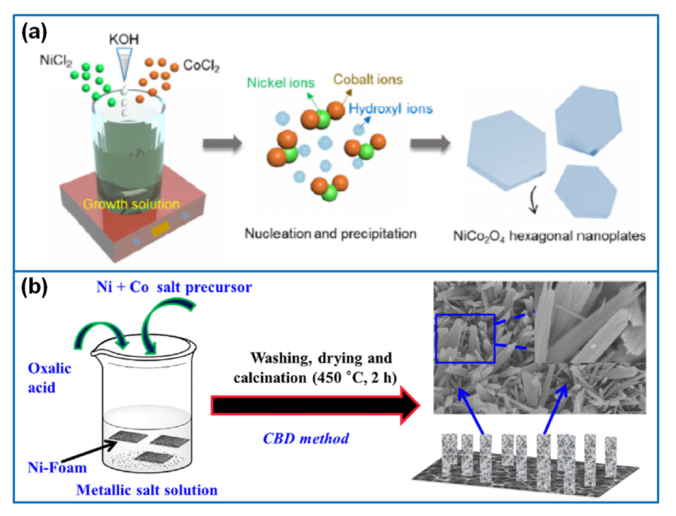 4六邊形納米片的制備。 (b) NF上的介孔NiCo