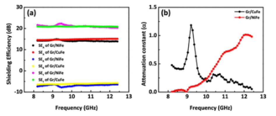 圖6. (a)Gr/NiFe和Gr/CuFe復(fù)合材料的SE