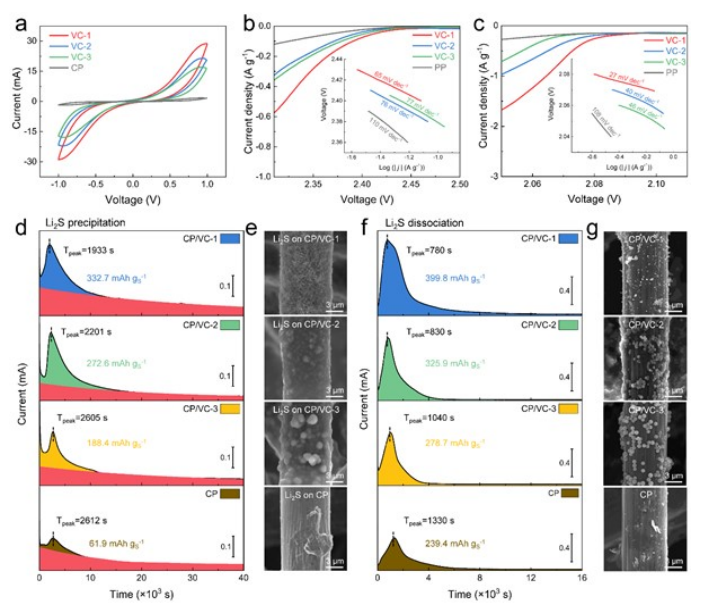 Fig 2. 用于電催化活性操縱的 VC 球的規(guī)模控制有針對(duì)性的有效硫轉(zhuǎn)化反應(yīng)。 (a) 以 Li
