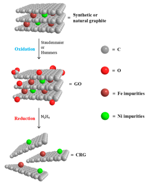 石墨烯相關(guān)材料是納米材料研究的前沿。制備石墨烯最常見(jiàn)的方法之一是將石墨(天然或合成)氧化為氧化石墨,然后將其剝離為氧化石墨烯,然后化學(xué)還原為化學(xué)還原石墨烯。在這里,我們發(fā)現(xiàn)無(wú)論是天然石墨還是合成石墨都含有大量的金屬雜質(zhì),這些金屬雜質(zhì)存在于經(jīng)過(guò)氧化處理后的氧化石墨樣品中,以及經(jīng)過(guò)化學(xué)還原后的化學(xué)還原石墨烯中。我們證明,盡管在石墨樣品的氧化處理過(guò)程中,大量與化學(xué)還原石墨烯材料相關(guān)的雜質(zhì)仍然存在,并極大地改變了它們的電化學(xué)性能。為了減少雜質(zhì)對(duì)石墨烯電化學(xué)性能的影響,我們提出了一種基于1000°C在氯氣氛下熱處理的石墨烯純化方法。我們的發(fā)現(xiàn)對(duì)整個(gè)石墨烯研究領(lǐng)域具有重要意義。