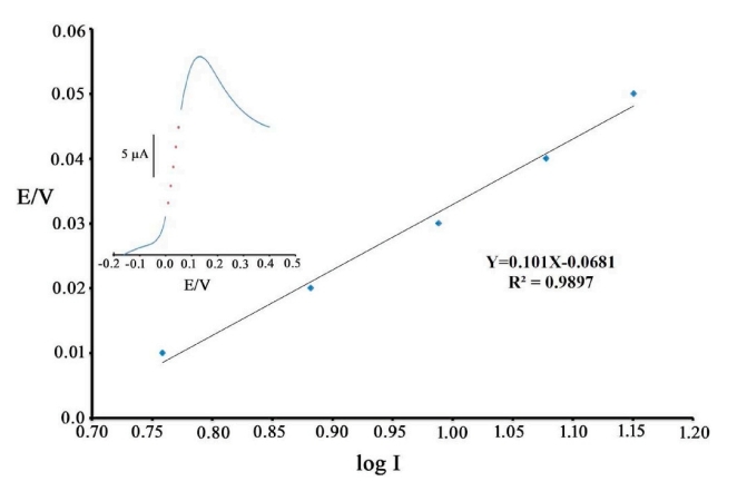 4/CSPE表面700 μM 4-AP氧化的Tafel圖。