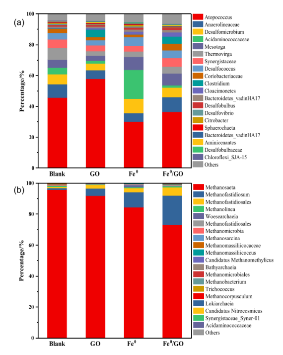 0/GO對(duì)水化產(chǎn)甲烷菌(Methanofastidiosum和Methanofastidiosales)有顯著的影響,從1.79%增加到24.11%。在Fe
