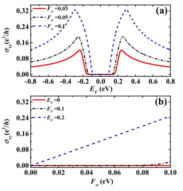 基于Kekulé-O (Kek-O)扭曲石墨烯的成功制備,我們從理論上研究了Kek-O石墨烯在非共振圓偏振光照射下的異常Hall效應(yīng)和Nernst效應(yīng)。采用Floquet理論,推導(dǎo)了Kek-O石墨烯在光照射下的有效哈密頓量。我們發(fā)現(xiàn)光照射可以解除谷簡(jiǎn)并,并誘發(fā)純粹的異常Hall和Nernst電流。Hall和Nernst電導(dǎo)率可以通過(guò)非共振圓偏振光進(jìn)行切換。作為費(fèi)米能量的函數(shù),Berry曲率為奇函數(shù)。當(dāng)費(fèi)米能量與低導(dǎo)帶或價(jià)帶邊緣重合時(shí),Berry曲率、異常Hall和Nernst電導(dǎo)率達(dá)到最大值。在一定的費(fèi)米能量下,反常Hall電導(dǎo)率隨光照參數(shù)的增加而線性增加,而Nernst電導(dǎo)率則先增大后減小。我們的研究結(jié)果對(duì)基于Kek-O石墨烯的光電器件的設(shè)計(jì)具有指導(dǎo)意義。