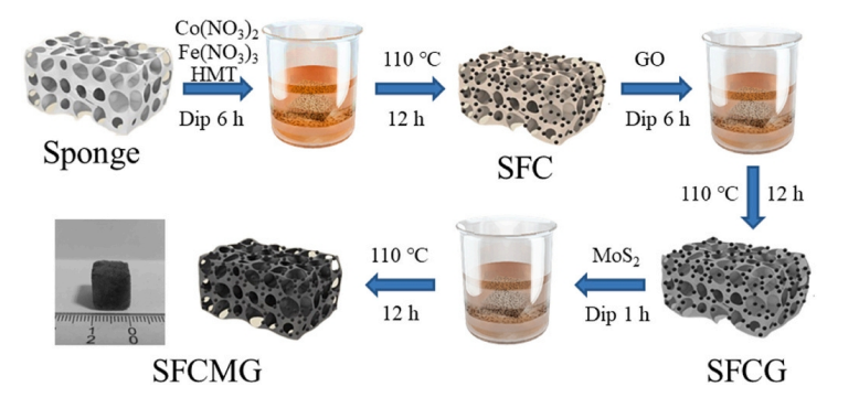 4海綿(SFCMG)。SFCMG能有效激活過一硫酸鹽(PMS)生成快速降解羅丹明B (RhB)的活性物質(zhì),在2 min和10 min內(nèi)RhB的去除率分別為95.0%和100%。氧化石墨烯的存在增強了海綿的電子傳遞性能,三維三聚氰胺海綿作為襯底為FeCo