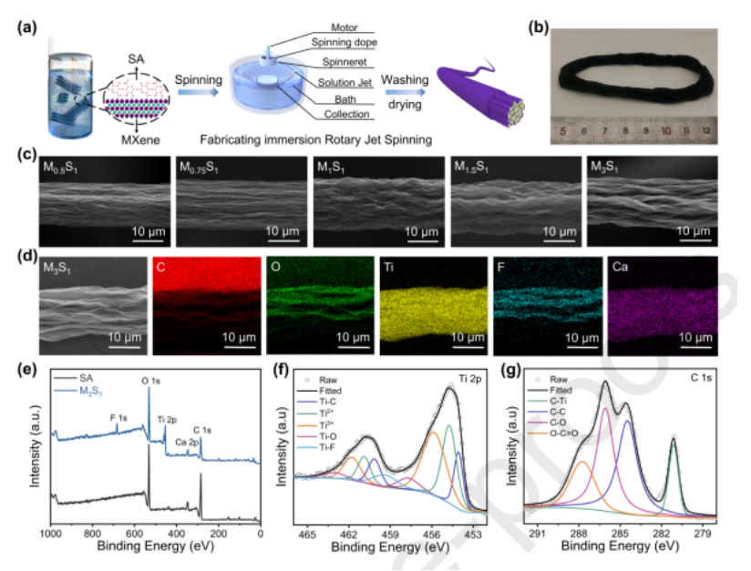 相關科研成果由哈爾濱工業(yè)大學先進復合材料國家科技重點實驗室Chao Wang等人于2023年發(fā)表在Chemical Engineering Journal(https://doi.org/10.1016/j.cej.2023.143983)上。原文:Strong and continuous MXene/sodium alginate composite fibers prepared by immersion rotary jet spinning process with outstanding electromagnetic inter‐ference shielding performance。