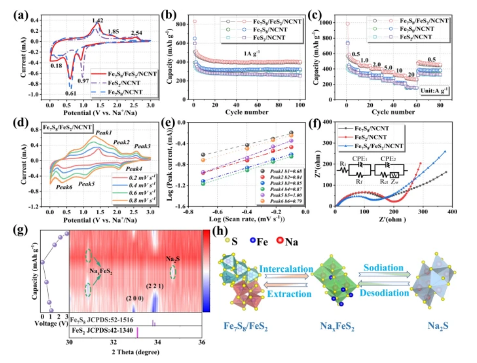 2/NCNT電極具有高的鈉儲存活性、快速的離子擴散動力學和優(yōu)異的電化學可逆性。Fe