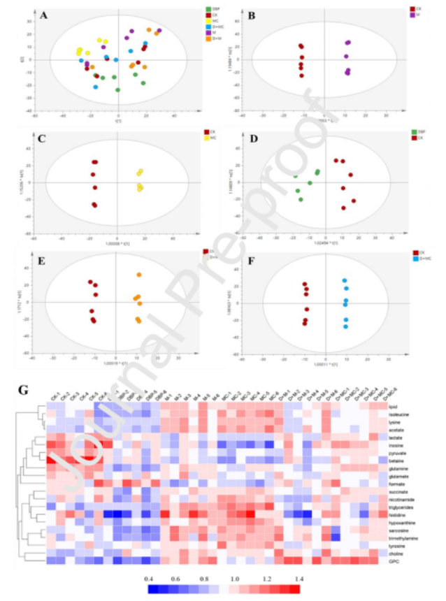 圖6 DBP單獨(dú)暴露以及DBP和MWCNTs/MWCNTsCOOH聯(lián)合暴露于斑馬魚(yú)幼魚(yú)的代謝特征。
